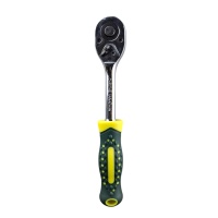 Ключ трещоточный на 1/2 от «Maximum Quality Tools» прост и удобен в работе благодаря встроенному реверсивному механизму. Храповый механизм с переключателем обеспечивает плавный ход и возможность быстрой смены направления вращения ключа. Присоединительный квадрат с шариковым фиксатором надежно удерживает съемные торцевые головки. Головка трещотки выполнена в форме капли и позволяет с легкостью добираться до труднодоступных мест. Двухкомпонентная рукоятка прорезинена и создает крепкий и надежный обхват. Инструмент изготовлен из прочной инструментальной стали, благодаря чему имеет высокий рабочий ресурс.