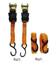 Ремни для крепления груза с храповым механизмом и крюками созданы для фиксации багажа и крепления небольших грузов (коробки, мебель и т.д.) к верхнему или прицепному багажнику легкового автомобиля, фургона и других транспортных средств. Прочная лента из полипропиленовых нитей двойного плетения не деформирует фиксируемый груз и имеет относительное удлинение не более 7 % при максимально допустимой рабочей нагрузке. Храповик стяжного багажного ремня имеет пластиковое покрытие и оснащен удобным механизмом разблокировки. Надежный зубчатый механизм предотвращает ослабление натяжения ремня во время движения транспорта. Крюки и храповый механизм выполнены из прочной стали.