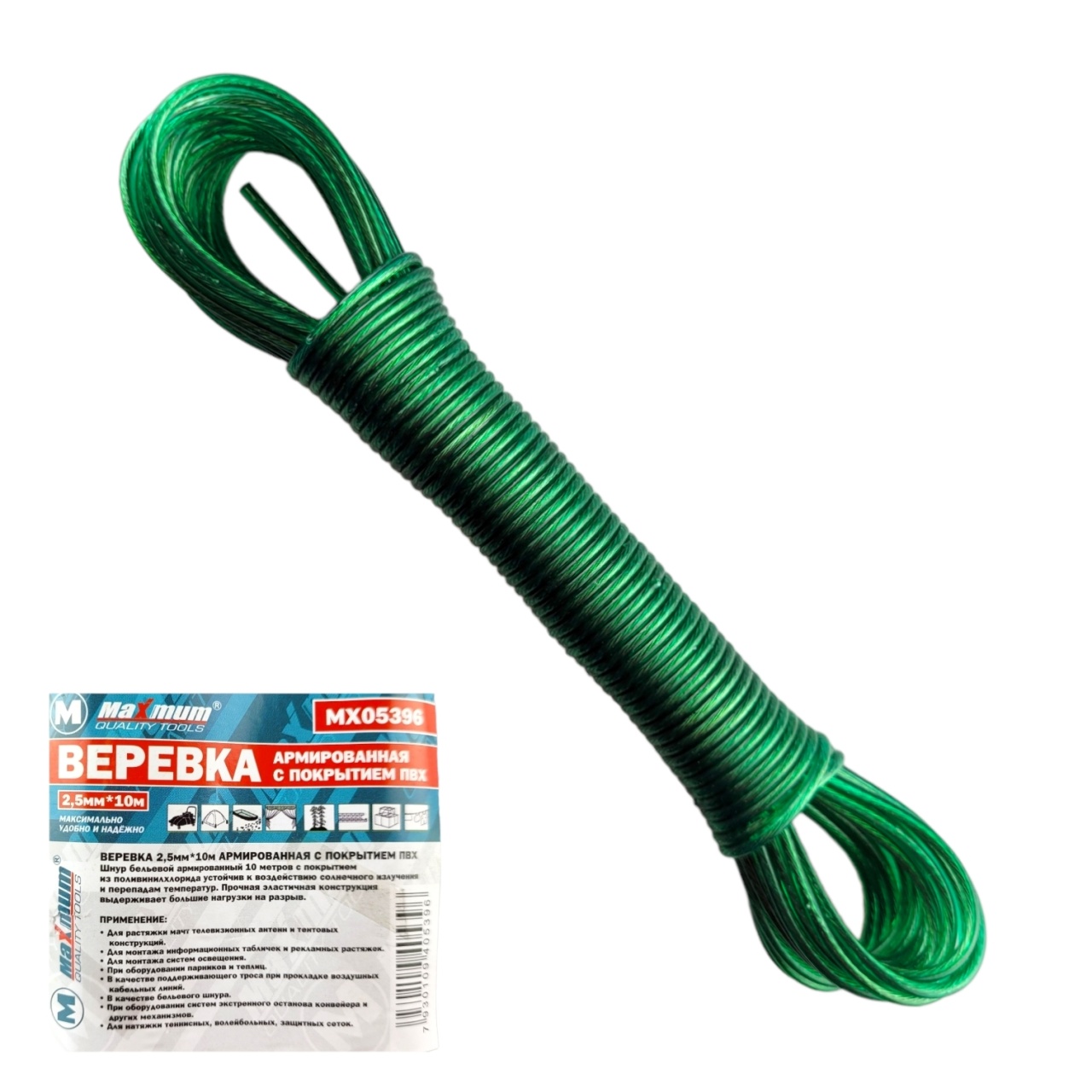Веревка ПВХ для белья армированная представляет собой вязаный металлический шнур длиной 10 метров. Упрочненная бельевая веревка со стальным сердечником станет незаменимым помощникам в хозяйстве. Шнур из полипропилена со сталью не растягивается, не выцветает, не окрашивает ткань.