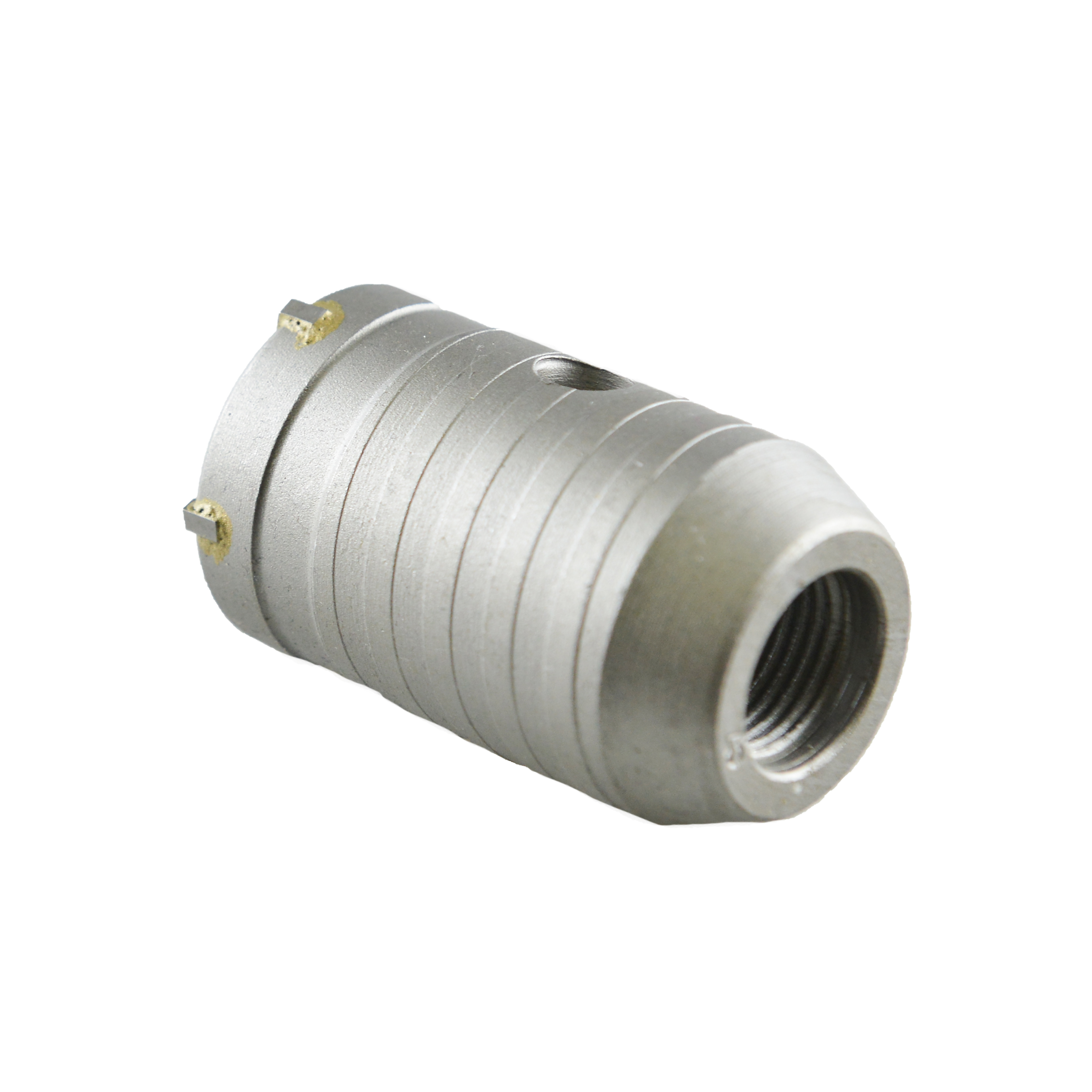 Корпус длиной 70 мм выполнен из углеродистой стали, а зубья сделаны из твердого сплава ВК8. За счет спиральной канавки обеспечивается эффективный отвод продуктов сверления, поэтому нагрузка на перфоратор снижена. К коронке дополнительно можно подобрать центрирующее сверло с необходимым типом хвостовика.